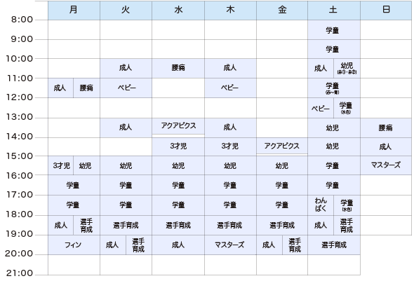 お子様のレッスンスケジュール 月会費一覧表 アクラブ調布 スイミング スクール