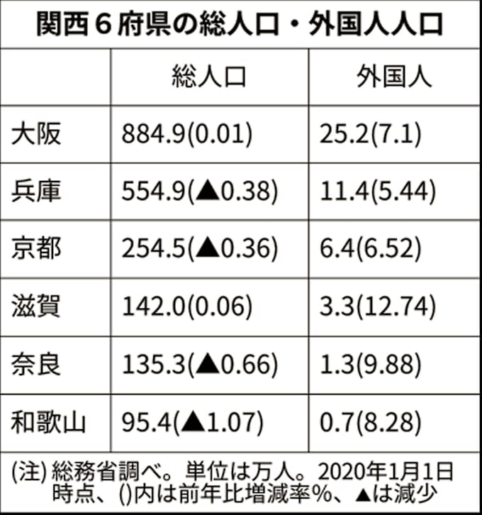 大阪府の人口 6年ぶり増 関西6府県の外国人7 増 日本経済新聞